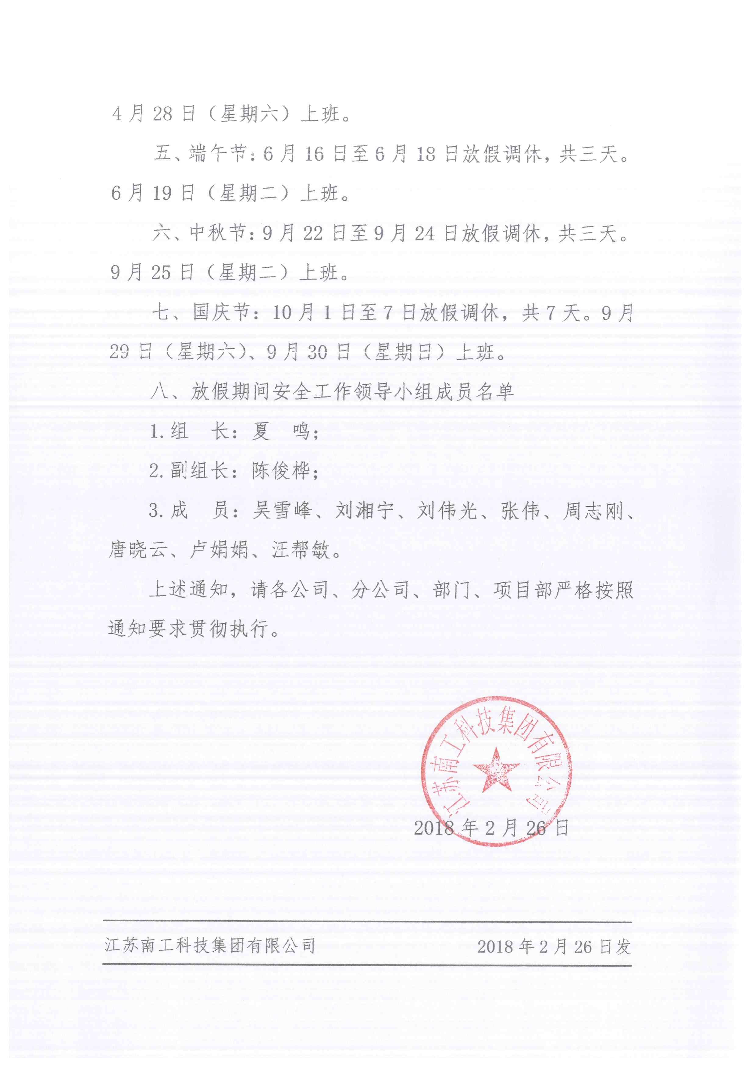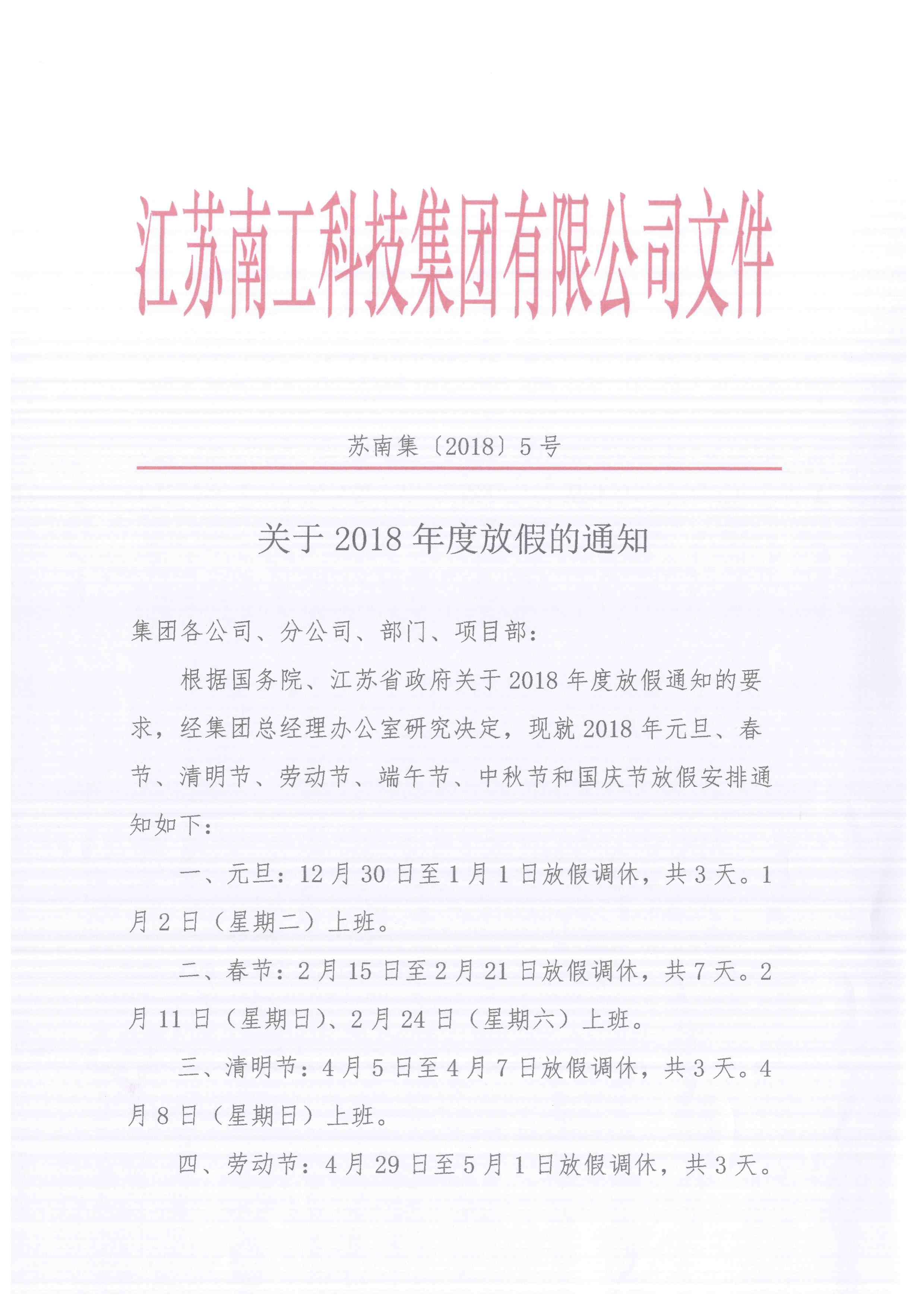 您的位置:集团首页 >> 新闻中心 >> 集团公告 >> 关于2018年度放假的通知