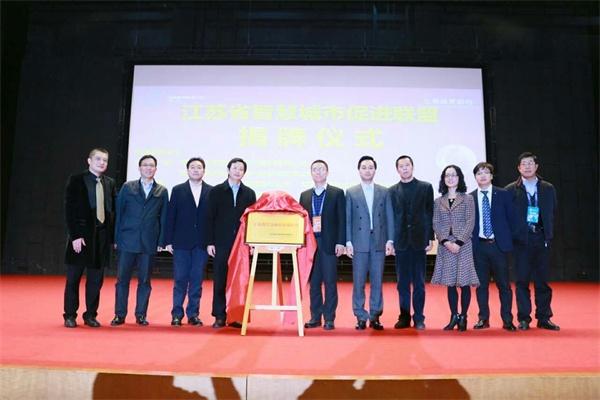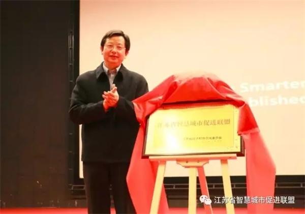 江苏省经济和信息化委员会副主任胡学同为江苏省智慧城市促进联盟揭牌。