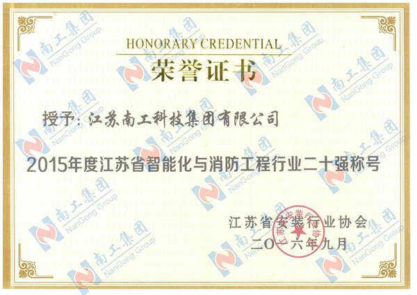集团荣获江苏省智能化与消防工程行业二十强企业称号