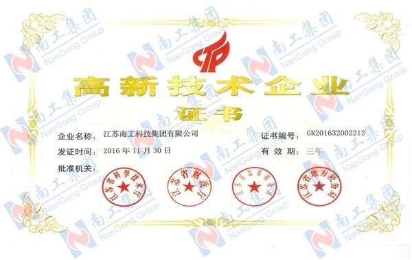 2016年11月30日,集团荣获国家级高新技术企业称号。