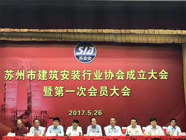 2017年5月26日,苏州市建筑安装行业协会成立大会在苏州市会议中心隆重召开。参加会议的有中国安装协会会长田秀增,中国建筑业协会智能建筑分会会长黄久松,中国安装协会智能化与消防工程分会会长、江苏省安装行业协会智能化与消防工程分会会长、江苏南工科技集团有限公司总经理陈晓,江苏省安装行业协会会长蒋东良、驻会副会长邹金林、秘书长吴辉、行业发展部主任席天阳,江苏省监理协会会长曹达双,苏州市住房和城乡建设局、苏州市民政局、苏州市建筑业协会、苏州市装饰装修行业协会、苏州市监理协会、苏州市安全技术防范行业协会及苏州市有关部门领导等100多人。