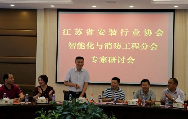 2017年6月16-17日,江苏省安装行业协会智能化与消防工程分会专家研讨会在江苏天诚智能集团有限公司隆重召开。参加会议的有中国安装协会智能化与消防工程分会会长、江苏省安装行业协会智能化与消防工程分会会长陈晓,江苏省安装行业协会智能化与消防工程分会常务副会长吴星红,副会长刘昌华、陈曦、顾永松、徐本裕,常务副秘书长席天阳,副秘书长祖咏、王建明、余晶,专家委员会名誉主任叶浩生、副主任万里远、张荣生及专家等60多人。江苏南工科技集团有限公司执行董事陈俊桦参加了会议。