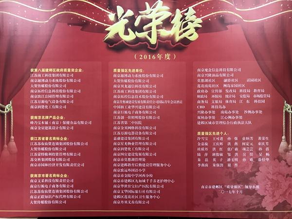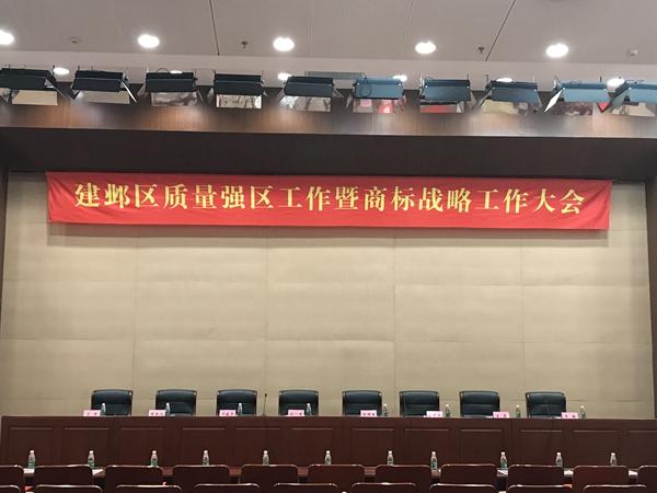 2017年10月12日,建邺区质量强区工作暨商标战略工作会议在区政府三楼小礼堂隆重召开。参加会议的有建邺区委副书记、区长、区质量强区领导小组组长闵一峰,副区长夏晓燕,南京市市场监管局局长范清、党工委书记吴骏,南京市质监局副局长张建平,南京市工商局副局长陈元虎,南京市质监局质量处处长徐乾仪,南京市工商局商标处处长王荣等250多人。
