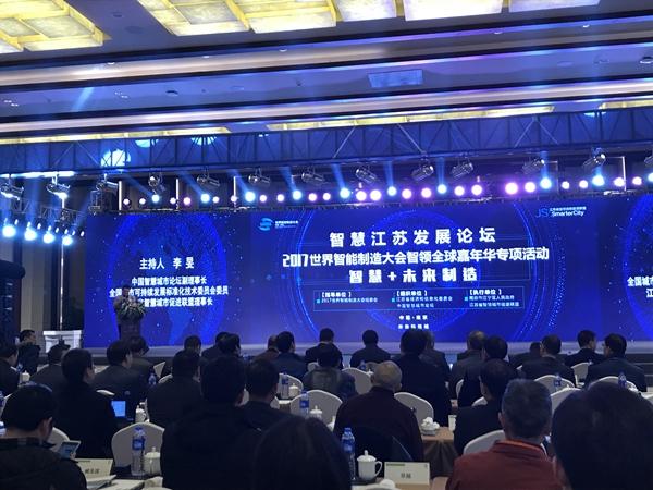 会议由江苏省经信委副主任胡学同和江宁区政府常务副区长李滨致开幕辞。会议主题为:智慧+未来制造。活动邀请了省有关领导、省内外智慧城市、智能制造、大数据领域权威专家学者,探讨江苏新型智慧城市建设与未来智能制造发展,就新形势下智慧江苏的推进和路径选择展开深入交流,为智慧江苏的发展提供思路和借鉴。中国工程院院士谭建荣做了“创新设计与智能制造:走向未来企业的必由之路”主题报告;国家信息中心总工程师李新友做了“大数据安全标准化工作进展”专题报告,中国城市科学研究会智慧城市联合实验室首席科学家万碧玉博士做了题为“从城市需求到智慧与可持续”的专题报告;华为EBG中国区智慧城市首席专家、智慧城市业务部副总裁洪小舟做了“数字经济与智慧城市”专题报告;著名大数据专家、信息管理专家涂子沛做了“城市大脑:新时代的南京长江大桥”专题报告;江苏省发改委原主任、江苏省智慧城市促进联盟专家委员会主任、南京大学教授钱志新做了“智能时代的新认知”专题报告;中国智慧城市论坛副理事长、全国城市可持续发展标准化技术委员会委员、江苏省智慧城市促进联盟理事长李旻做了“智慧江苏产业发展探索”专题报告。