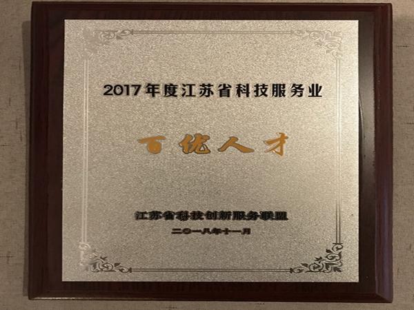 会议对2017年度江苏省江苏省科技服务业“百强”机构和“百优”人才进行了表彰并颁奖。江苏南工科技集团有限公司荣获2017年度江苏省科技服务业“百强”机构称号,吴雪峰副总经理荣获2017年度江苏省科技服务业“百优”人才称号。