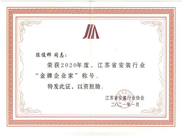 会议一致通过了吸纳新会员单位、变更副会长人选等提案。表彰了江苏省安装行业2020年度“安装百强企业”、“品牌企业”、“品牌企业家”。江苏南工科技集团有限公司荣获江苏省安装行业2020年度“安装百强企业”称号,集团执行董事陈俊桦荣获“金牌企业家”称号。