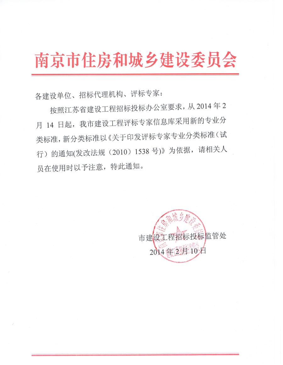 关于采用建设工程评标专家信息库新分类标准的通知