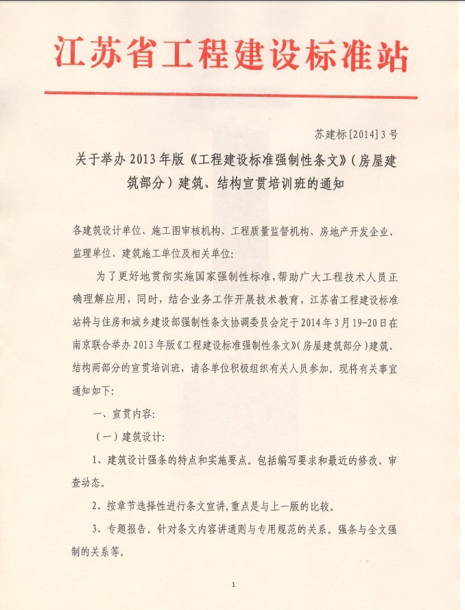 转发“关于举办2013版《工程建设标准强制性条文》(房屋建筑部分)建筑、结构宣贯培训班的通知”
